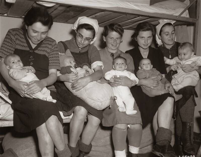 What we see here, is an image from the private photo archive of Miriam Rosenthal, born Miriam Schwarcz in Komarno, Czechoslovakia, on Aug. 26, 1922, an Auschwitz and Dachau survivor who married the Hungarian Bela Rosenthal in 1944, shortly before they were rounded up by the Nazis as Hungary could no longer protect its Jews. Some particularly dumb holocaust deniers make the mistake of parading this picture around as "babies born in Auschwitz", when in reality it shows an image of babies born towards the end of the War in Kaufering I, a sub-camp of Dachau located 50 kilometres west of Munich. Miriam Rosenthal was transferred from Auschwitz to work in an Augsburg Messerschmitt factory (yes, transfers of the able-bodied from Auschwitz to work at munitions factories was a thing) before she was taken to Dachau at age 22 along with Eva Fleischmanova. When American soldiers liberated Dachau and its subcamps, they were surprised to find this rare sight - a total of seven Jewish mothers and their babies, George, Jossi, Leslie, Marika, Agnes, Judit and Szuzi. Deniers like to spin this around and use the picture (and less than a handful of others) to make the false claim that babies born and raised in concentration camps was a common occurrence.
