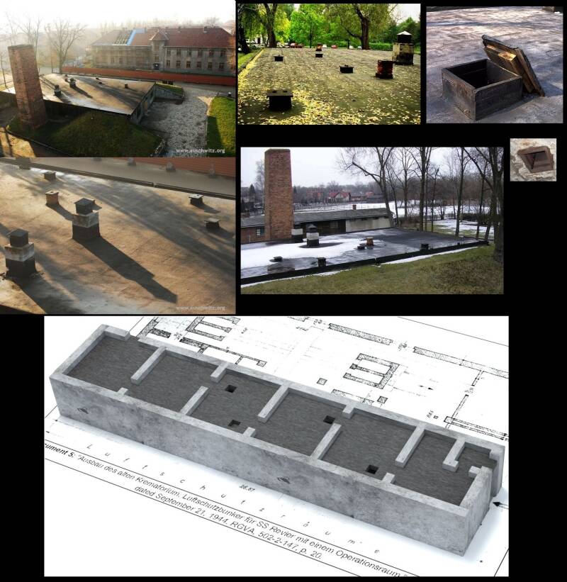 Holes on Krema I's roof, and their correspondence to the building's interior