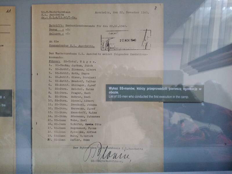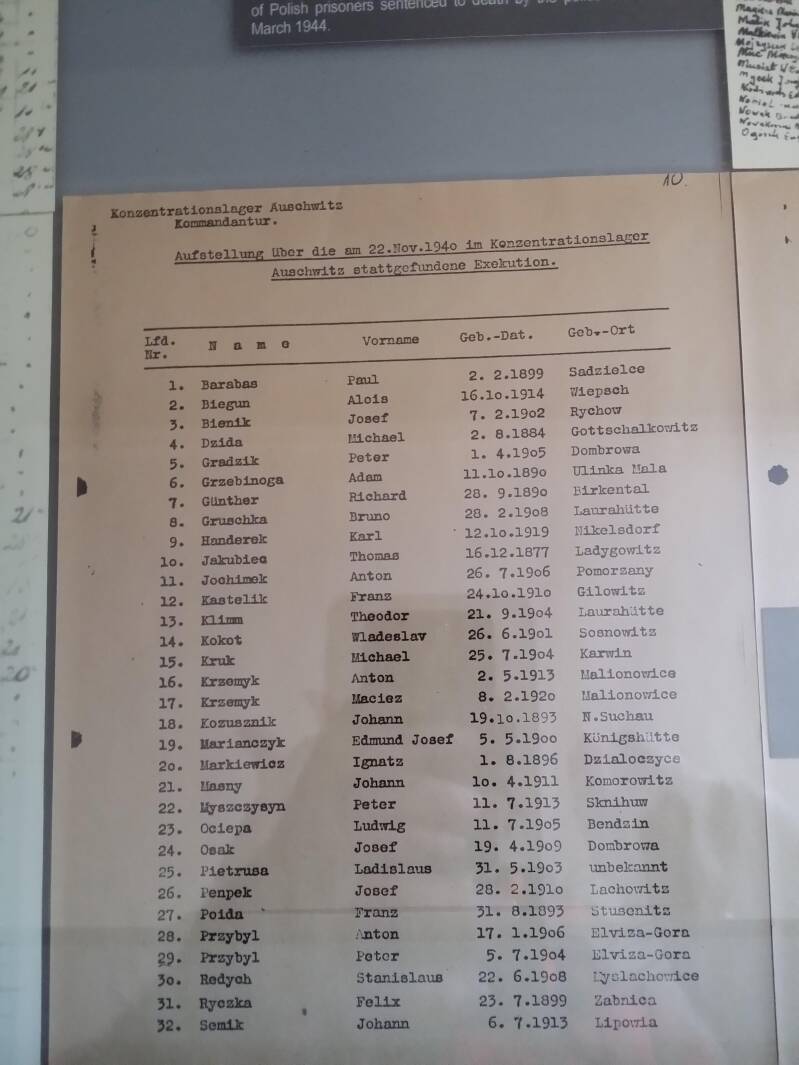 Document listing the names of an Auschwitz execution squad, November 22, 1940