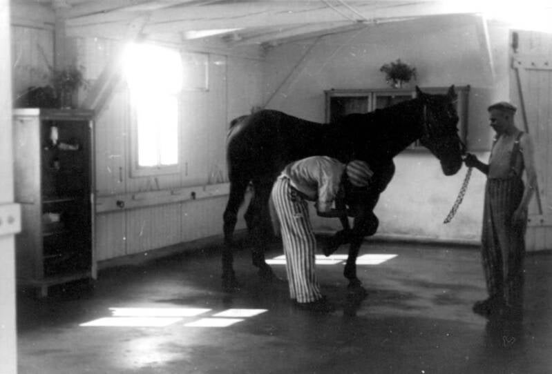 Horse grooming in Babitz, one of the Auschwitz sub camps