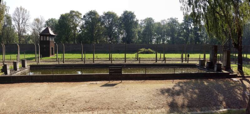 SS-guard and holocaust denier Thies Christophersen was stationed here, in the Rajsko subcamp, because he knew a thing or two about farming. He is the author of "Die Auschwitzlüge" (The Auschwitz Lie). Deniers use him as prime witness that no homicidal gassings took place in Auschwitz, since Thies Christophersen "was stationed in Auschwitz", and he himself said he never saw any gassings (although in Die Auschwitzlüge he actually does not say this and rather says nothing at all about homicidal gassing).