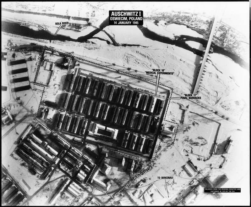I have given a brief history of Auschwitz I I have provided several aerial photographs of Auschwitz I toward the end of the war