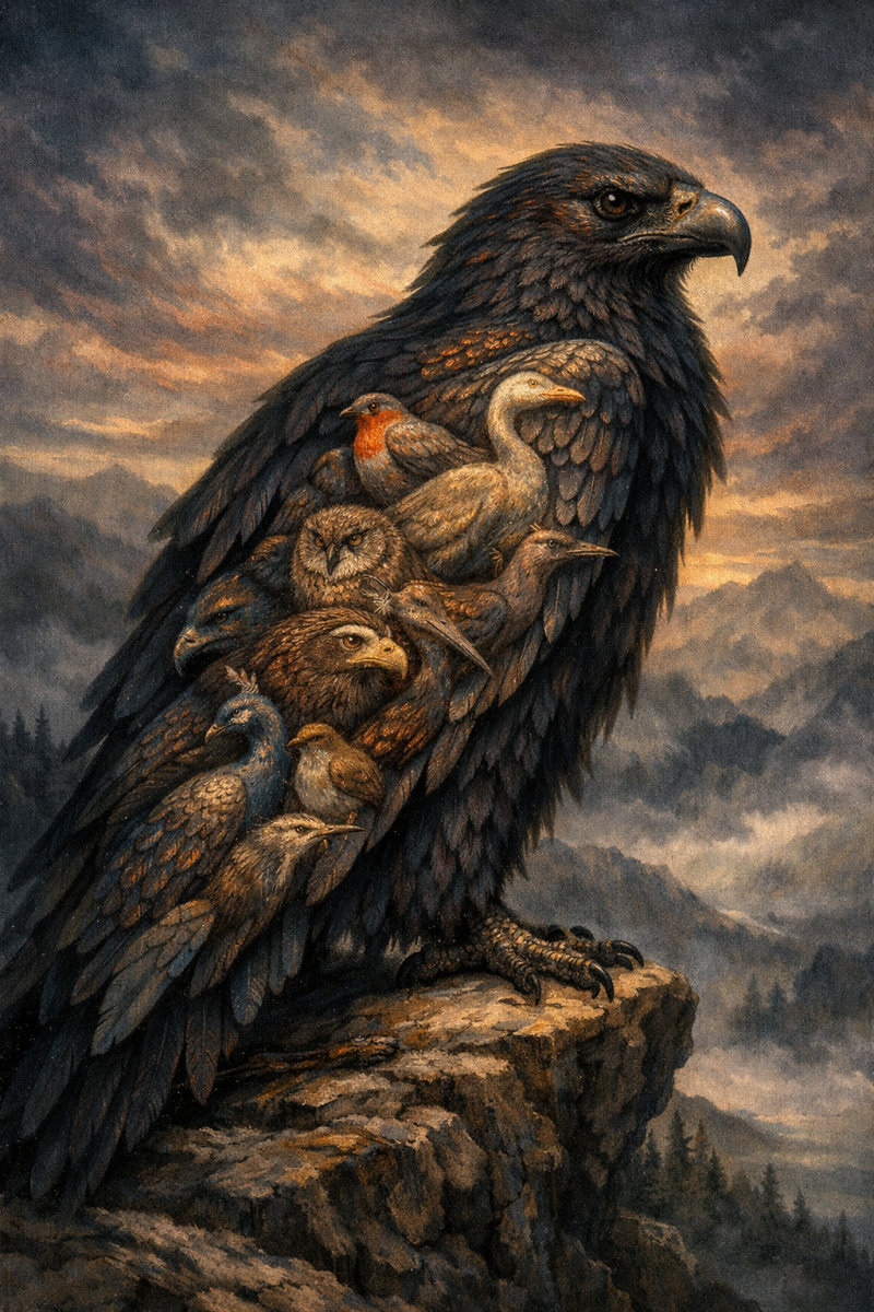 The Moon Bird system was created in 2026 by astrologer and birdwatcher Corvus Aquila, with the generous and inexhaustible help of ChatGPT. It can be freely used for non- commercial purposes. Artists can freely play around with depicting the hybrid birds and mythical creatures, and they may commercially exploit those depictions. Copyright applies only to the text on this page and to the general concept, not to the archetypal imagery.