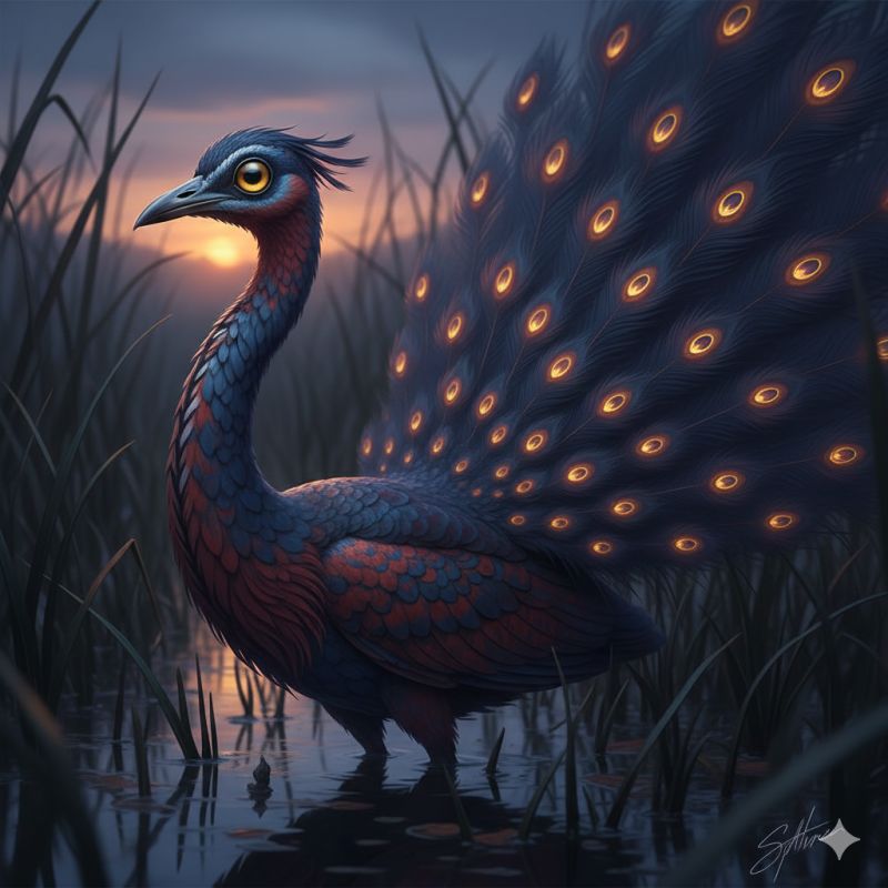 Vergulde Nachtpauw, Gilded Night-Peacock (Pavo crepuscularis)