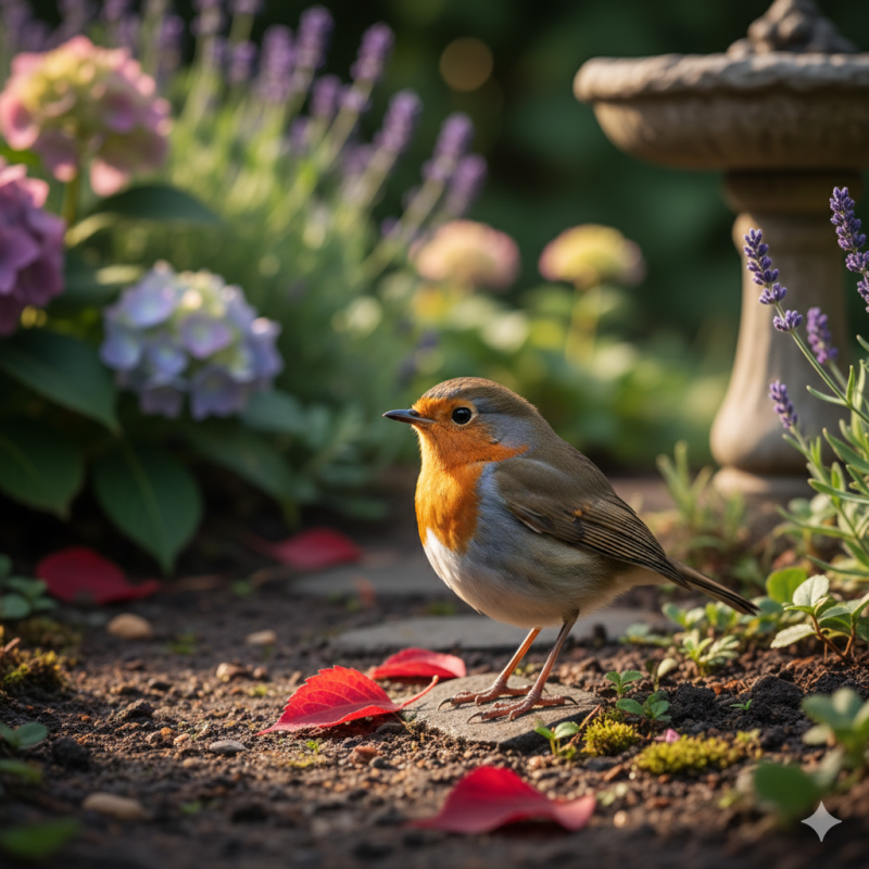 Robins are boldly visible, territorial, emotionally expressive in body and stance.