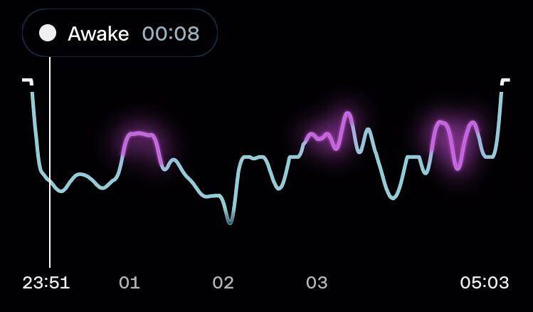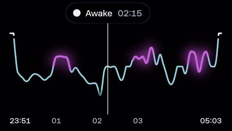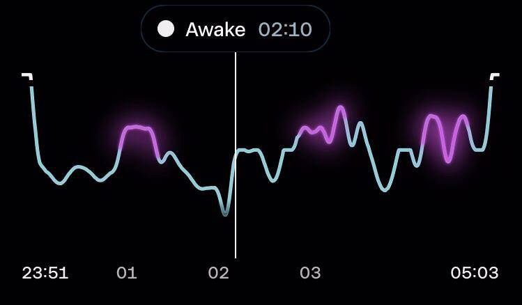 Voor het ontwaken was er sprake van N3 (diepe slaap). Volgens Sleep Cycle was er eerst een periode van N3 tussen 01:51 en 01:53 (circa 2 minuten). Uitzonderlijk kort, wat te maken lijkt te hebben met de drie verhogingen tussen 01:52 en 01:53.