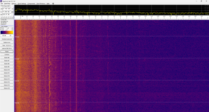 Zoals hierboven al genoemd, waren er ook hoge piek rond 15:27 en 15:45. Ook die eerste piek had duidelijk te maken met deze bromtoon van circa 27 Hz: