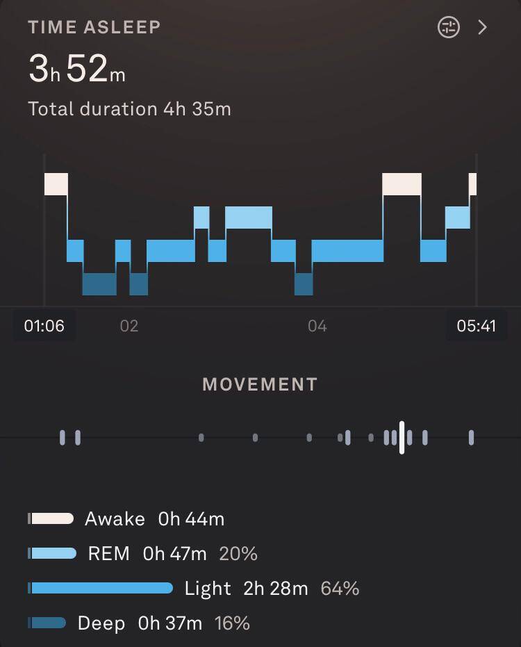 * **MainSleep_TotalSleep_Oura_min** 4h 6m