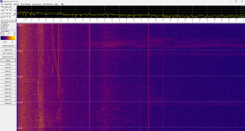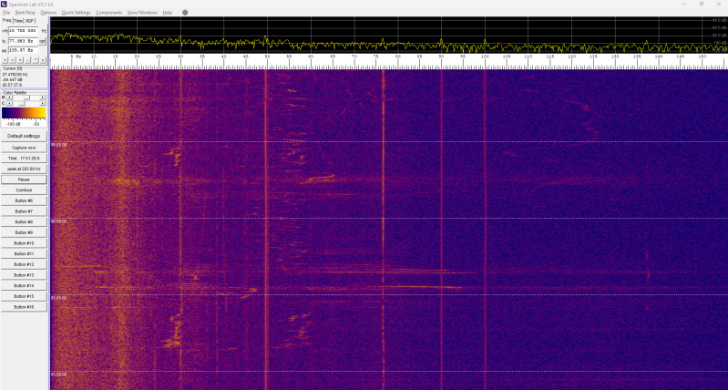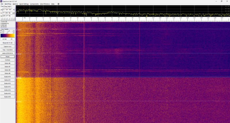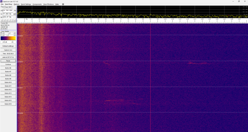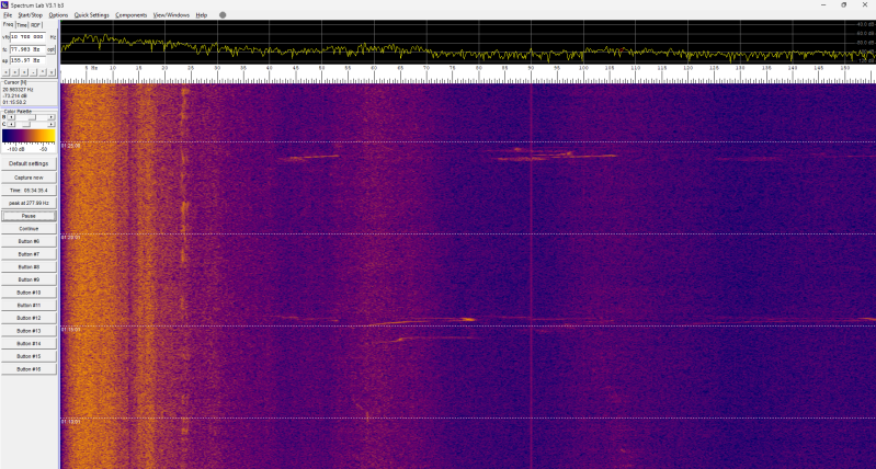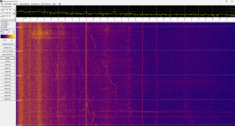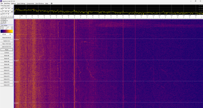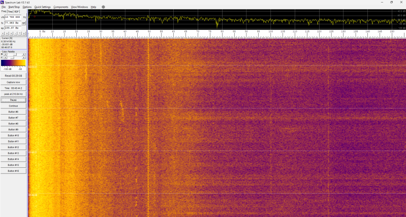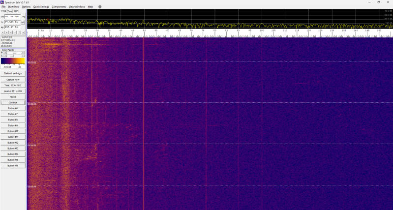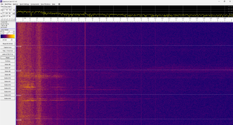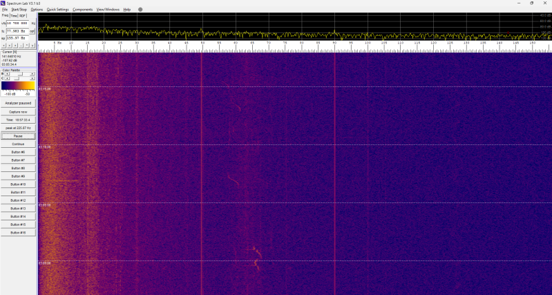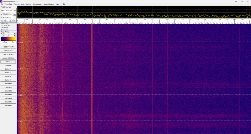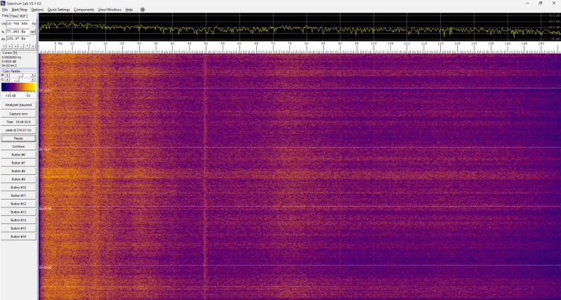 Er gebeurt deze nacht niets in het spectrogram: constant hetzelfde beeld.