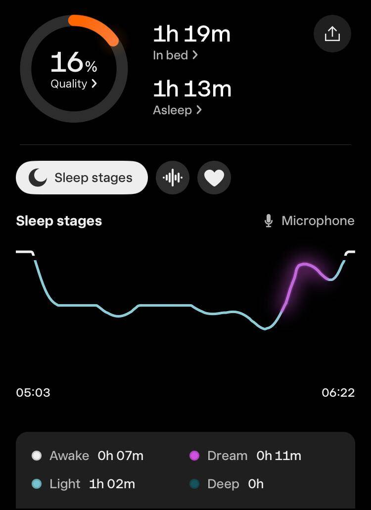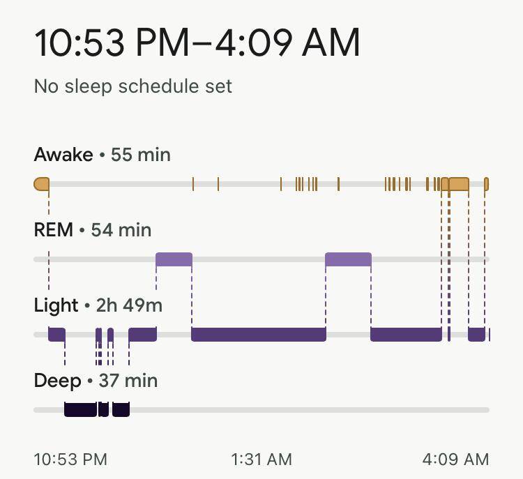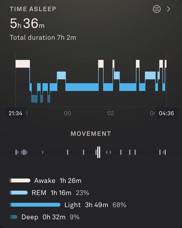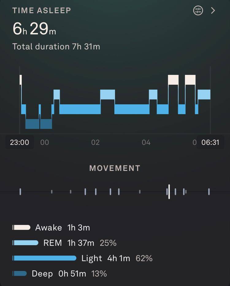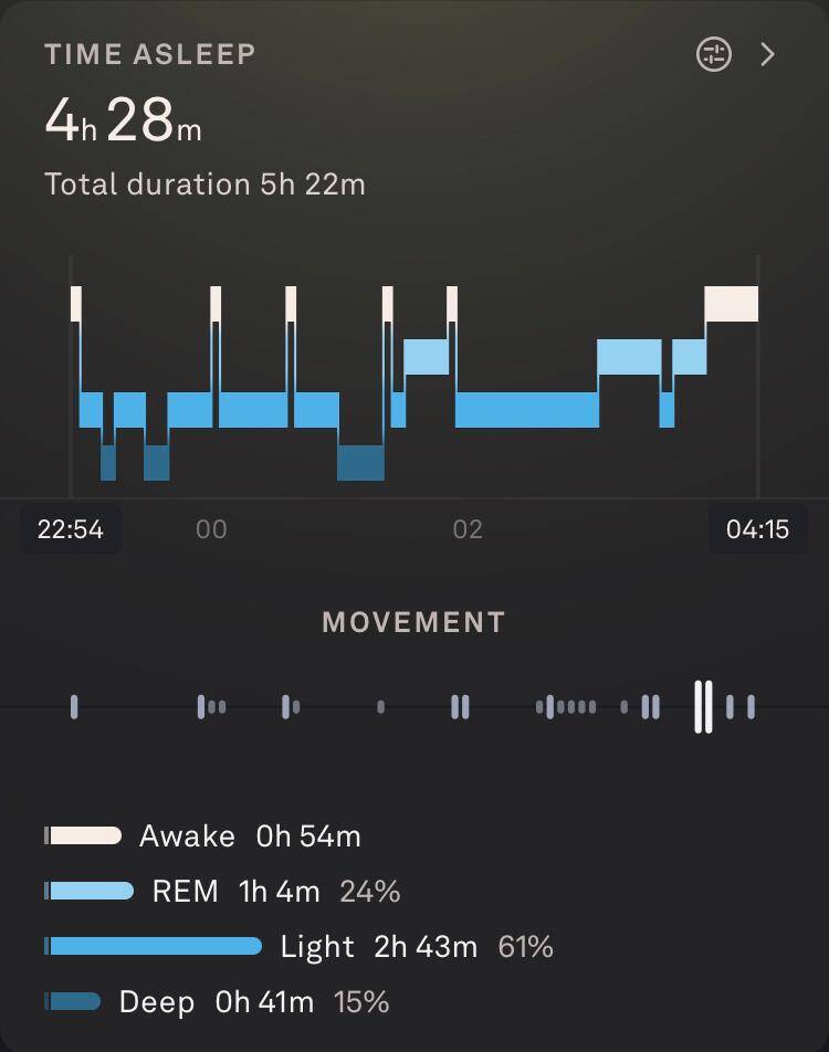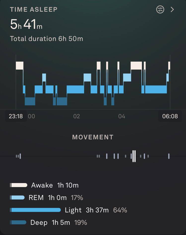 Fitbit horloge vergeten om te doen, dus vandaag alleen de slaapgegevens van Oura en Sleep Cycle.