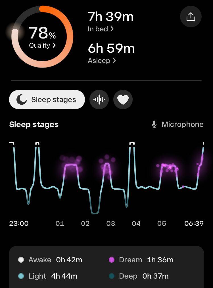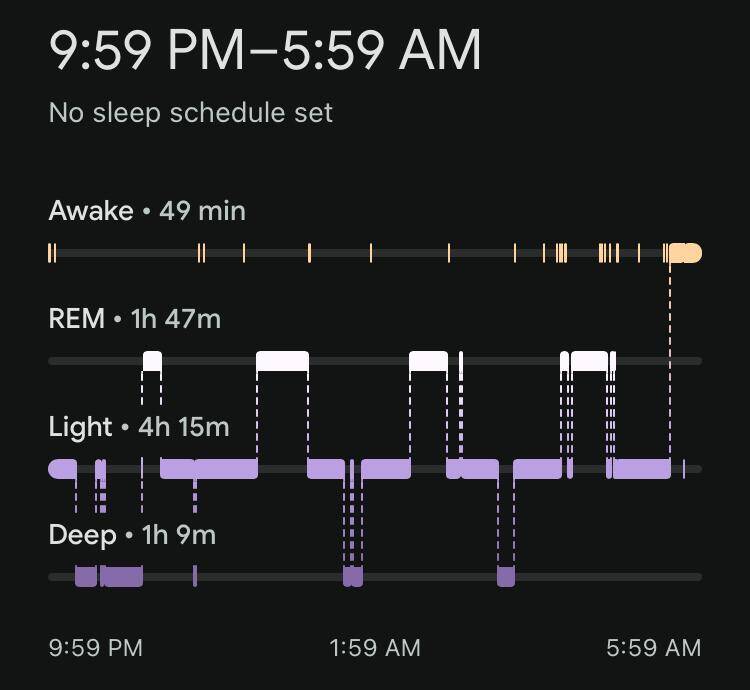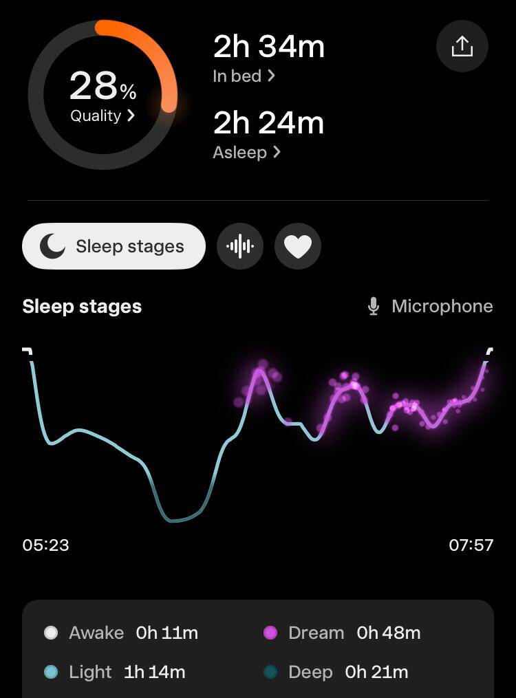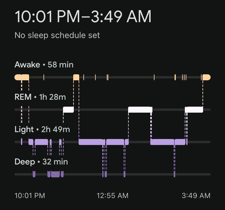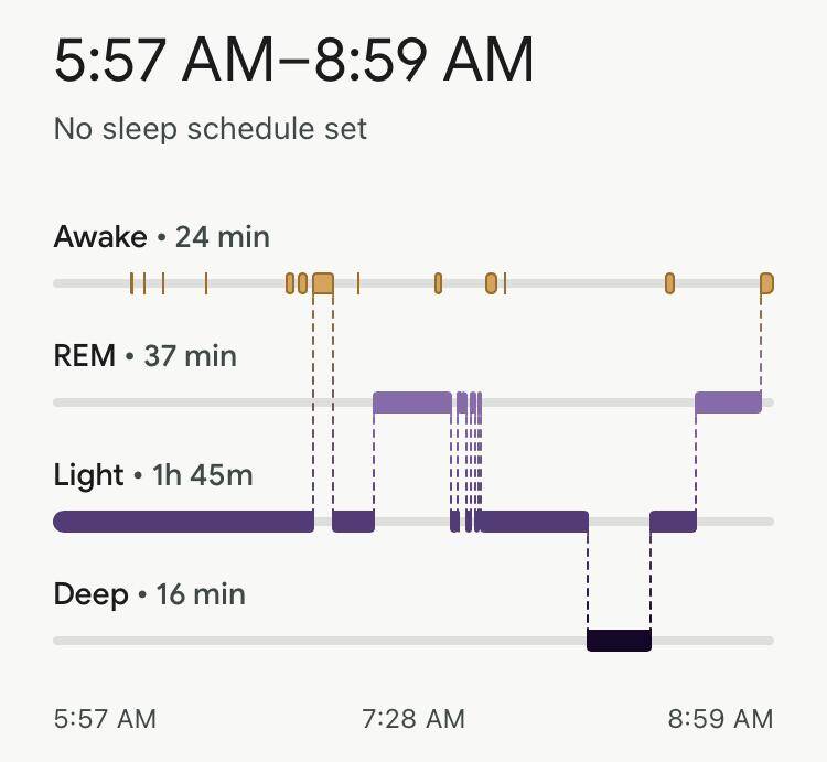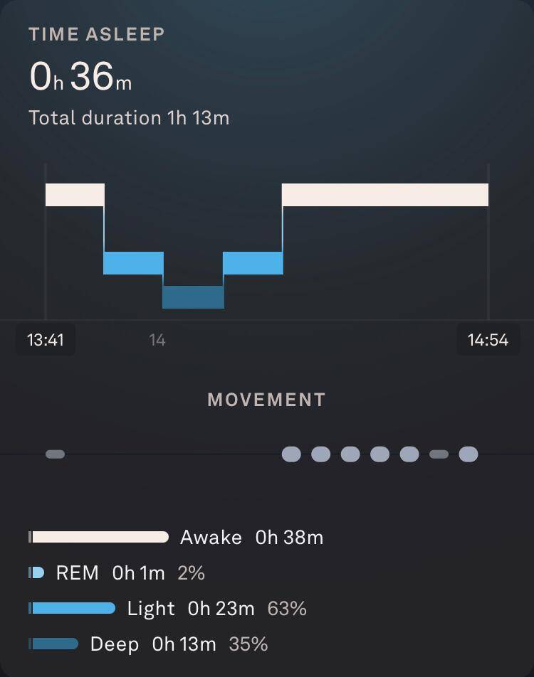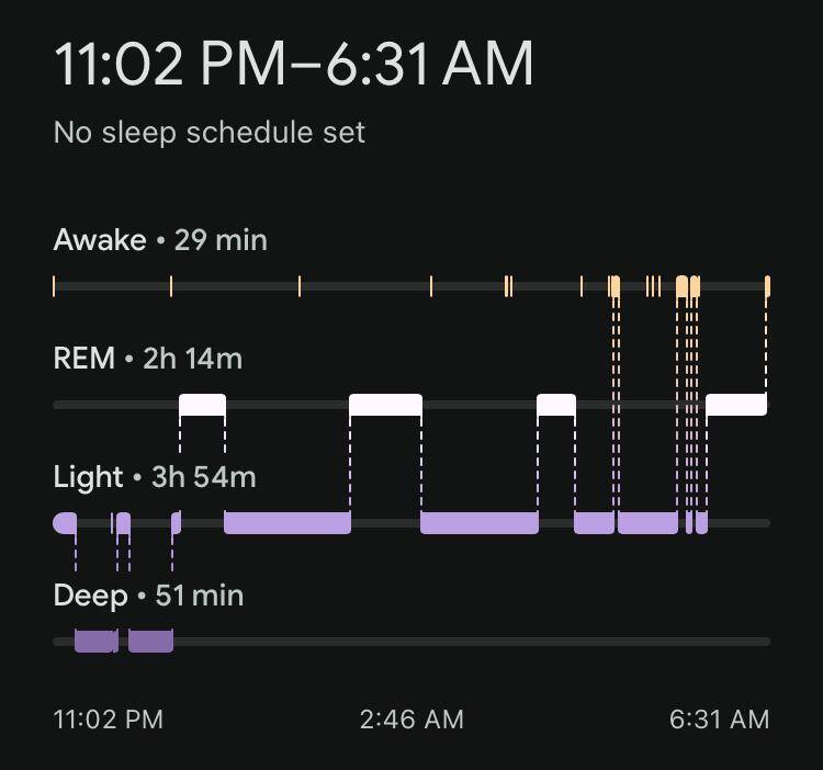 Fitbit horloge vergeten om te doen, dus vandaag alleen de slaapgegevens van Oura en Sleep Cycle.