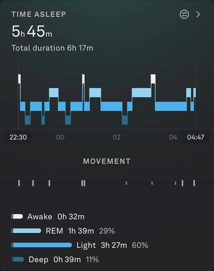 * **MainSleep_TotalSleep_Oura_min** 5h 45m