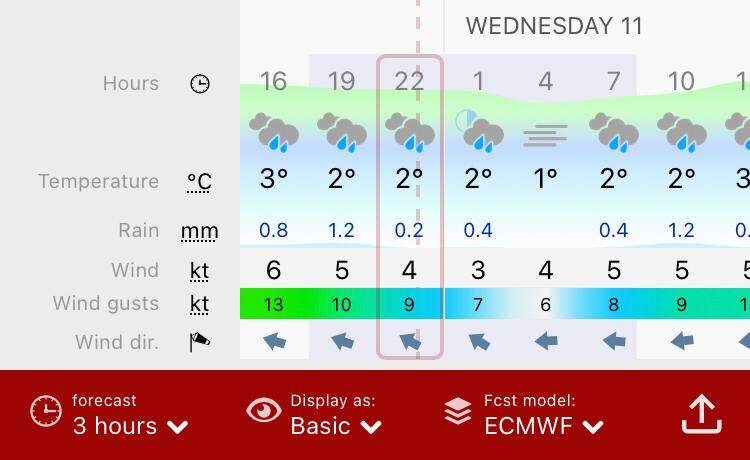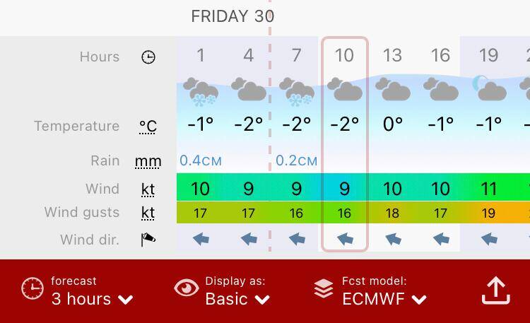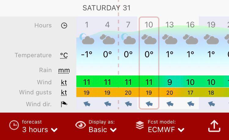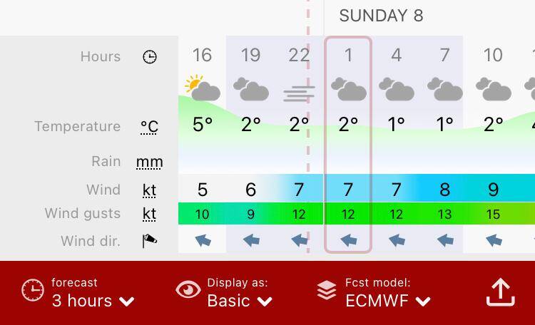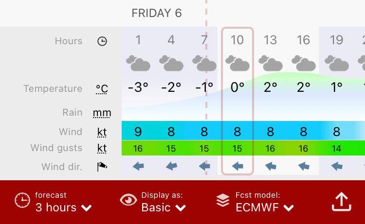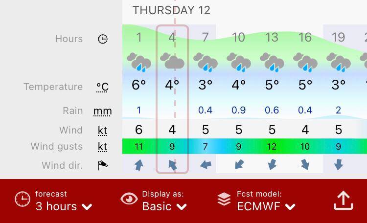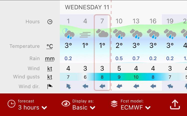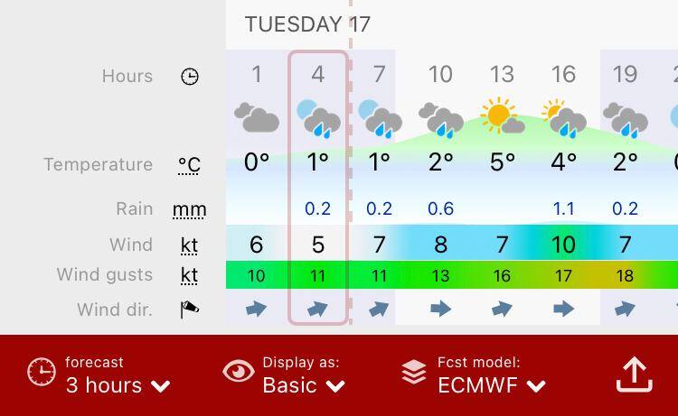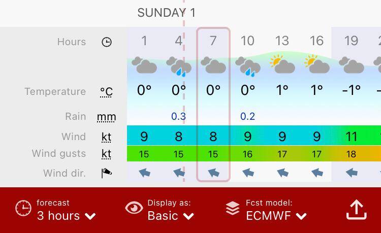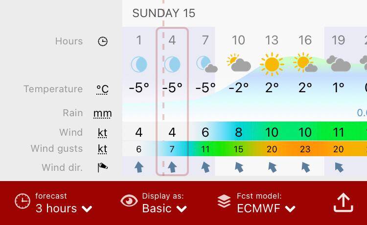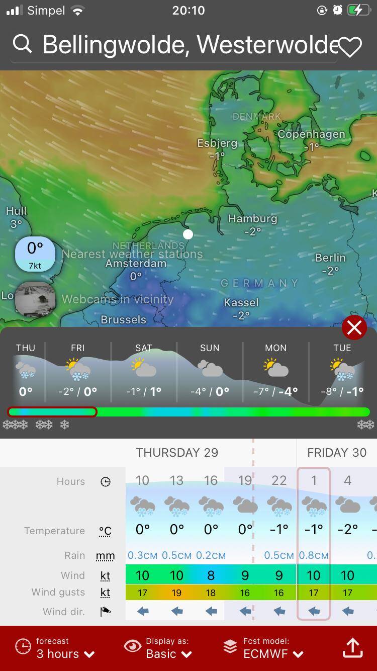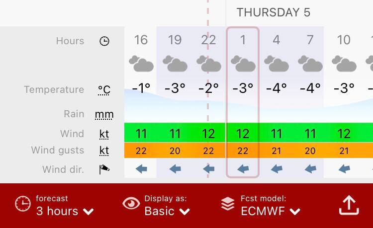 In het midden opnieuw de Windy windkaart app.