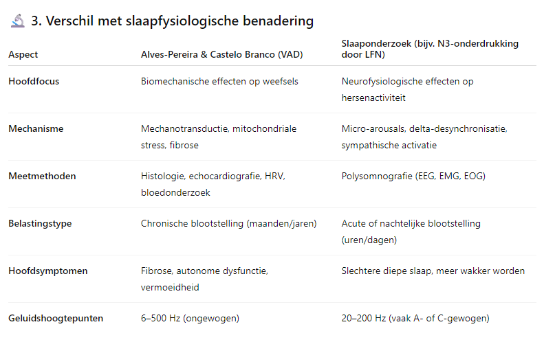De insteek van Mariana Alves-Pereira en Nuno Castelo Branco was niet primair gericht op slaapverstoring, maar op wat zij beschouwen als een rechtstreeks biophysisch effect van laagfrequent geluid (LFN/ILFN) op het lichaam — zelfs wanneer het geluid niet hoorbaar is en de persoon niet wakker wordt of zich gestoord voelt.