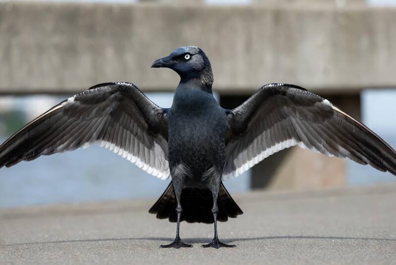 Zijn ogen zijn diep, reflecterend en observerend, als spiegels van het collectief bewustzijn. De snavel is subtiel gebogen, geschikt om roepen te dragen over water en wind.