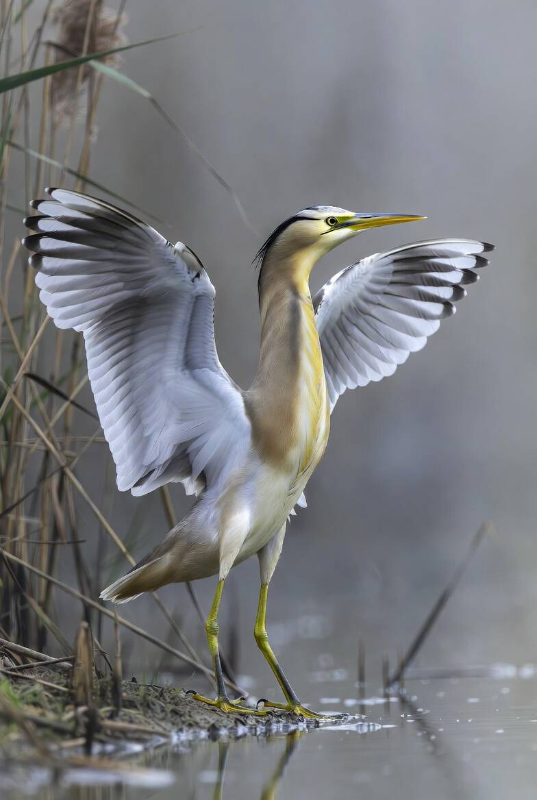 De Mistroep Roerdompmeeuw combineert het slanke, sluipende lichaam van de roerdomp met de gracieuze, zwevende vorm van de zilvermeeuw.