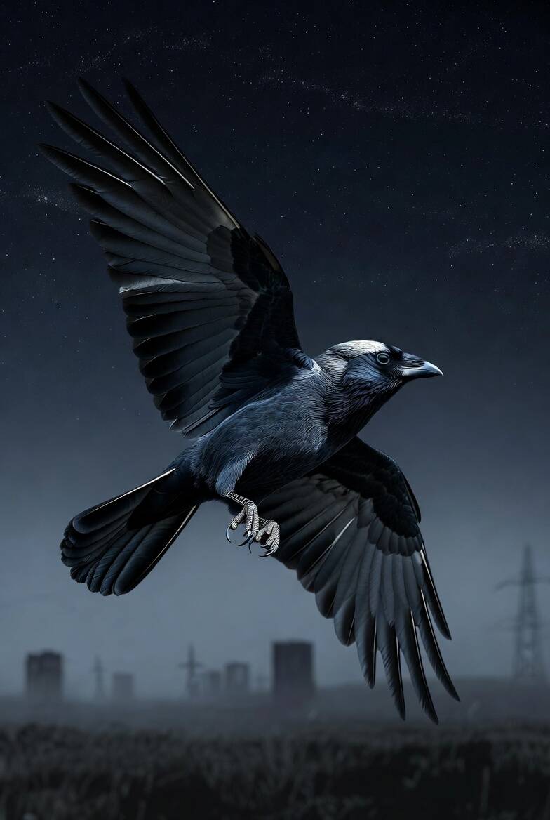 Onder het licht van de Maan zweeft deze vogel tussen de schaduwen van de nacht en de golven van stilte, als een gids die geheime paden opent naar waarheid en inzicht.