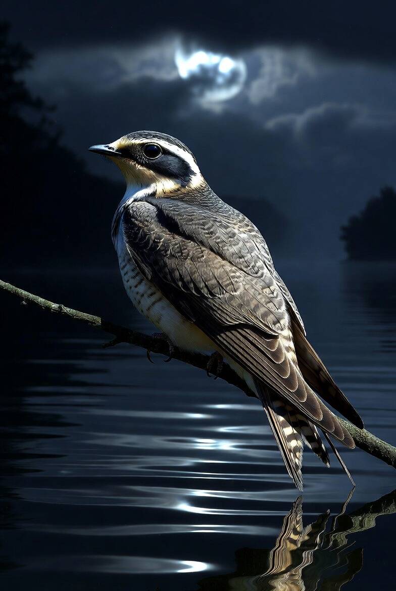 Wanneer de Maan in Waterman in het Twaalfde Huis staat, ontstaat een Maanvogel die dromen, verbeelding en subtiele inspiratie belichaamt. Zijn aard is visionair, onafhankelijk en intuïtief, en hij bevordert creatieve inzichten, verborgen inspiratie en het ontdekken van nieuwe mogelijkheden. Zoals een kauwnachtzwaluw stil door de nacht zweeft en dromen in beweging brengt, zo wekt deze Maanvogel fantasie en verbeeldingskracht in innerlijke en verborgen sferen. Door zijn aanwezigheid plant hij ook in de harten van anderen het zaad van inspiratie, vrijheid en visionaire ideeën.
