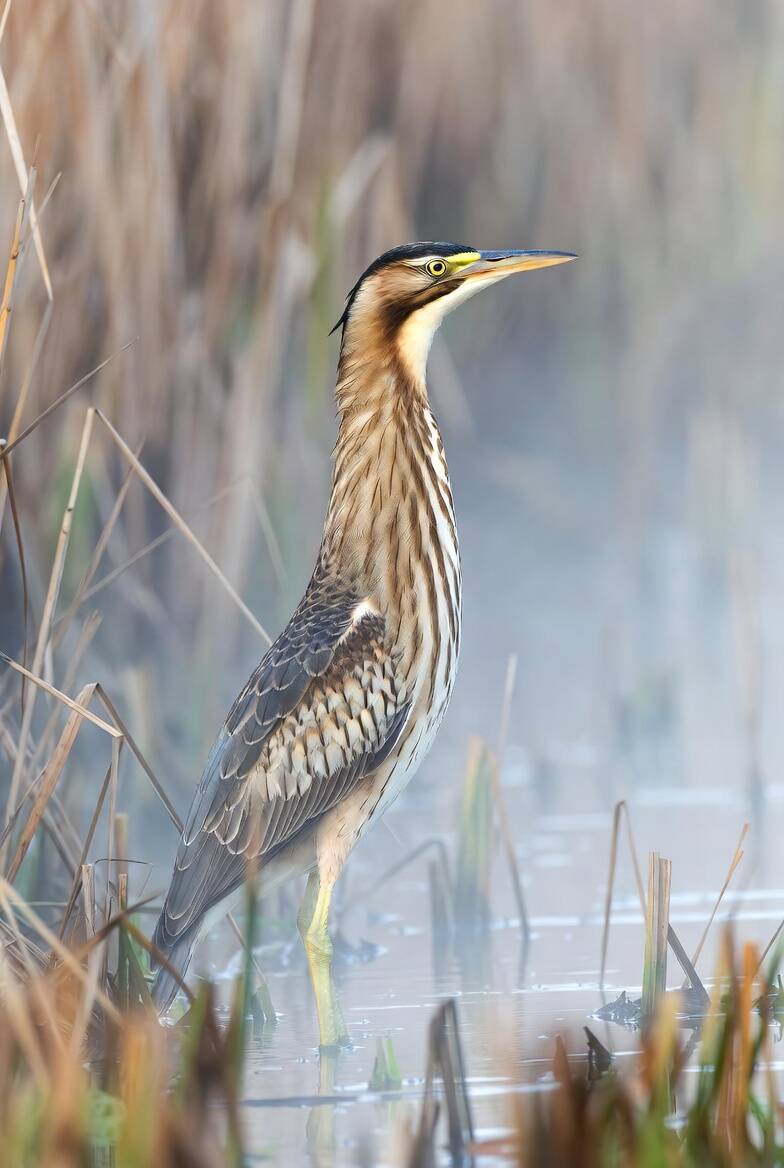 De Mystieke Roerdompvalk combineert het sierlijke, geheimzinnige lichaam van de roerdomp met de krachtige vleugelstructuur van de giervalk. Zijn beweging is traag en doelgericht, alsof hij in beide werelden tegelijk beweegt.