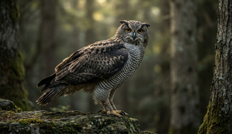De Nauwkeurige Leider is compact en gespierd, met de strakke lijnen van een havik en de fijne details van een buidelmees. Zijn verenkleed is subtiel gemêleerd in zachte bruin- en grijstonen, met een ingetogen maar vastberaden uitstraling. Hij leeft in overzichtelijke bossen, struikgebieden en rustige hoogten waar orde, precisie en doelgerichte actie essentieel zijn.