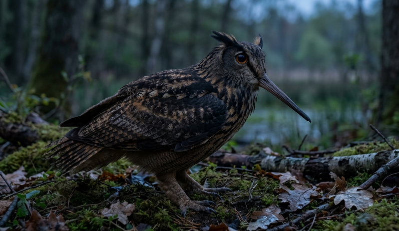 De Diepzinnige Schaduwvogel combineert de discrete aard van de houtsnip met het mysterieuze zwart-bruin van een oehoe. Zijn ogen zijn intens, en zijn verenkleed lijkt de duisternis zelf te weerspiegelen. Hij leeft in afgelegen bossen, schemerige moerasgebieden en stille valleien, plekken waar geheimhouding en introspectie vanzelfsprekend zijn.